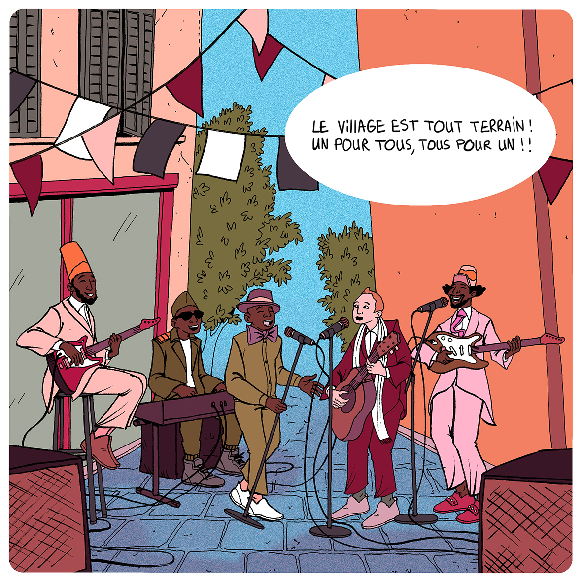 Un village ouvert à tous ! Sur sa route le village a pu accueillir de nouveaux membres devenus parrains, tel que David Donatien, Yael Naïm, Mamani Keïta. Une quête initiatique et collective !